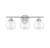 Adding the Savoy House Carson 3-light bath bar easily helps you boost the illumination and the style of any bathroom. Its fishbowl-style clear glass shades make a big statement and are open at the bottom, making it easy to replace the bulbs. The streamlined structure offers up subtle detailing with a mid-century modern vibe and the circular backplate echoes the shape of the glass shades. Finished in satin nickel. This fixture is 22.5" wide and 8.5" tall. It extends 7" from the wall. Uses 3 standard size bulbs of up to 60 watts each (not included).
