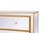 Striking a balance between elegance and functionality, this 40” wide cabinet is likely to be a perfect choice. It has three drawers with generous storage space, glamorous mirror surfaces, and stylish mitered corners. This contemporary chest with drawers is a perfect storage complement whether in your bedroom or any other room in your home. FEATURES: *Reflexion collection *3 large drawers * crystal knobs *Hand painted gold finish *Beveled mirror panel *Solid wood trim and legs *Wood drawer glides *Inside lining painted in gold. PRODUCT DETAILS: Measurement W40xD16xH32” *No assembly required *Material in solid wood and engineered wood *1 year limited warranty.