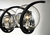Rectangular metal channel, finished in Black, is meticulously formed in a curl design to create a unique and dramatic design. Clear Seedy glass balls supported by cups of Polished Nickel are strategically positioned to balance out the design.