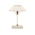 The Daphne Table Lamp looks as if it is made of one material in three distinctive finishes but the base is made of wood while the other elements on the ivory table lamp are made of wrought iron and brass in antique brass and gold finishes. The shape of the oval shade with its painted trim is a design detail worth noting.