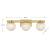 The Savoy House Darien is a 3-light bath bar with fabulously chilly appeal. A minimal frame is finished in bold Warm Brass and holds three orbs of Ice Glass, adding sub-zero cool with tons of frosty texture. Darien is 7.25" in height, 25" in width and extends 7.25" from the wall. Uses three candelabra size bulbs of up to 60 watts per bulb. Bulbs not included. This bath bar is damp area rated.