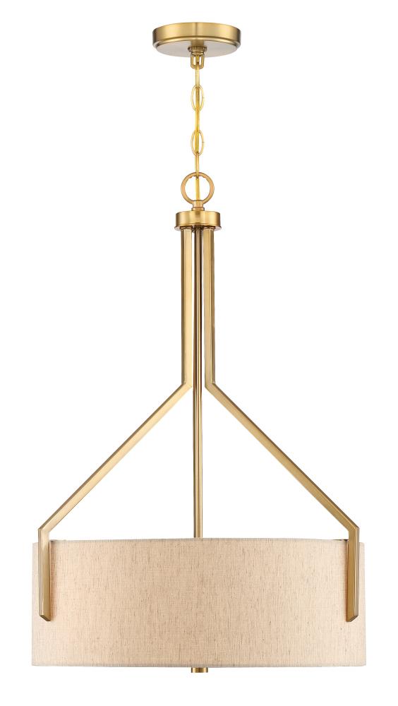 , Brushed Gold Pendant with Beige Linen + Etched Diffuser shade ideal for today's interiors