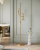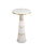 The Eleanora Drinks Table has a telescoping body composed of stacked alabaster segments that are separated by rings of brass. The disc of alabaster that forms the tabletop rests on a brass disc into which the top fits snugly, mimicking the thickness of the other rings. The base is a smaller alabaster disc that anchors the white stone table.