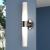 The simplicity and elegance of the Elliot collection is perfectly designed to blend with any contemporary interior at an affordable price. Tapered cylinders of frosted opal glass extend along a circular satin nickel wall plate, creating a streamlined form. The fixture, with its sleek design and bright illumination, speaks to a sense of functionality as well as style. Mount these versatile fixtures either horizontally or vertically for the ideal look in your bath, hallway or other living areas of your home. Lighting tip: for an even light dispersion, the Elliot will be maximized when paired with two long, tubular bulbs.