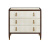 The Evie Shagreen Chest is made of mahogany in a dark walnut finish. The wood-framed panels and drawers covered in ivory faux shagreen are accented with brass door pulls. This ivory chest was inspired by vintage shagreen furniture from the 1920s.