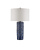 The Fairmont Dark Blue Table Lamp is a columnar navy lamp with a surface covered in handmade gingko leaves. The fanciful lamp is made of dark clay ceramic covered in a dark blue reactive glaze by a community of talented women artisans who live at the border of Burma and Thailand. Creating the leafy shapes and affixing each one by hand is a painstaking process that results in an artisanal creation.