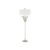 The Forget-Me-Not Silver Floor Lamp has sparkling floral accents with flowing buds made of crystals. Complementing the silver leaf finish, the sprays of crystal flow up from the thin stem to capture the illumination. The fixture is a functional piece and a work of art, as each crystal is hand-pinned. The reduced height of the drum shade, which is fastened to the fixture with a crystal finial, is an elegant touch for this two-light floor lamp.
