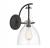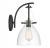 The Savoy House Foster 1-light sconce is the perfect way to add a sleek look to any space. Its large shade of clear seeded glass has a pleasantly curving shape and pairs nicely with the matte black finish. Foster is 14" in height, 8" in width and extends 10" from the wall. It uses 1 standard size bulb with a max of 60 watts (bulb not included).