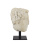 Though the Greek Princess Head Fragment looks as if it has survived since ancient times, it is actually made of composite and inspired by a museum piece that was a valuable antique. The skill of the artisans who created it is evident, not only in how the broken areas are so convincing but in the aged-beige finish that fools the eye into thinking it is carved from stone. The beige sculpture is fastened to a black metal base, which is also museum-style.