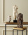 Made of composite in an aged beige finish with random spritzes of antiquing, the Head of Zeus masquerades as an artifact. The marble-like sculpture has two artisans to thank for its feeling of authenticity: the mold maker, who is central to the work; and the painter, who hand-paints the piece to create the illusion that it was unearthed after being carved ions ago. The white sculpture is mounted on a metal base in a black finish.