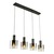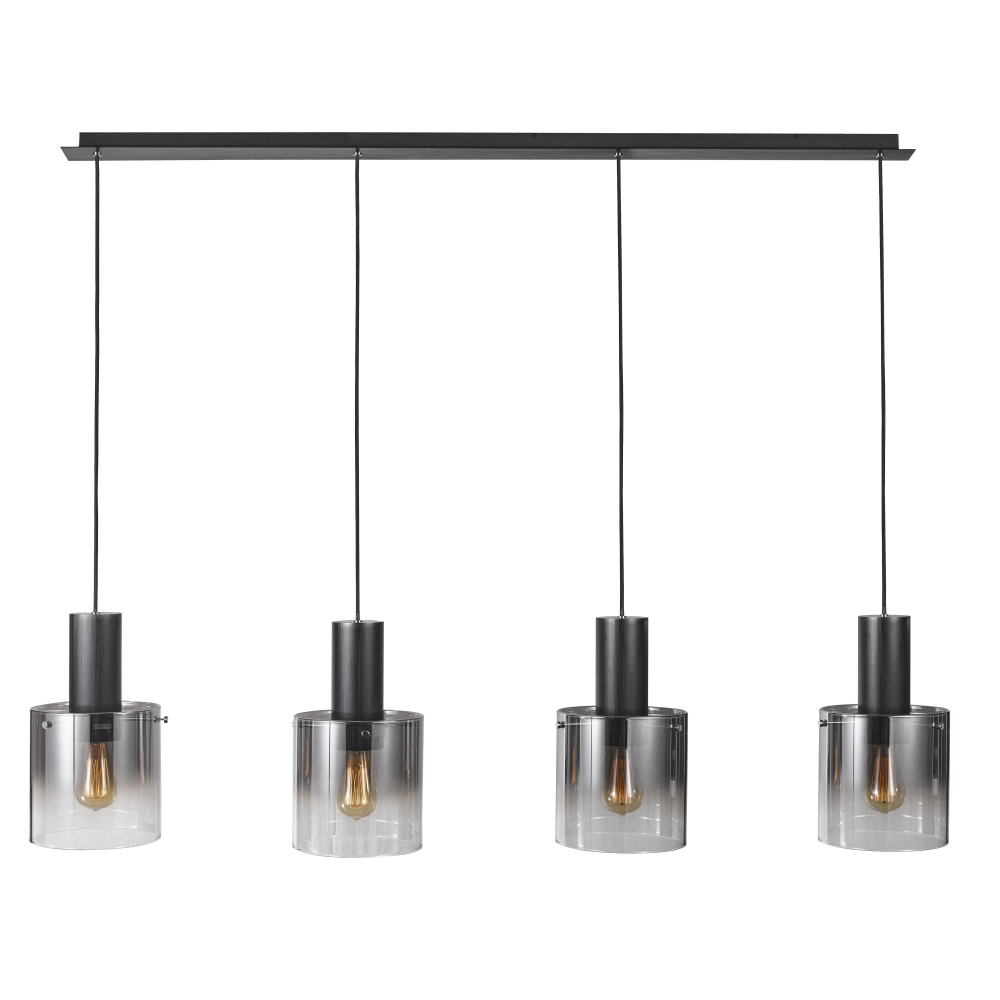 The "Henley" collection 4 light linear island chandelier features smoke type glassware, and black hardware suspended on wires.