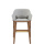 The Inga Counter Stool covered in a Greenlight Powder fabric has an upholstered back and seat that sits nimbly atop a solid oak frame in a morel brown finish. The paleness of the fabric and the warmth of the wood create a soft contrast, while the brass kick-plate brings a bit of brightness to the design.