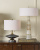 Drawing inspiration from the mid-century modern era, the Jebel Table Lamp was designed with turned stone elements that have incredible personality. The aluminum details in a brushed-brass finish contribute to the warmth of this black lamp's profile, as does the beige linen shade from under which delicate pull-chains dangle.