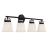 The Kaden 4-light bathroom vanity light from Savoy House has a classic look with a hint of industrial inspiration. White opal glass shades are held in place with eye-catching hardware that, like the bar and backplate, is finished in matte black. Kaden is 10.5" in height, 34" in width and extends 7" from the wall. It uses four standard size bulbs with a max of 60 watts per bulb. Damp area rated.