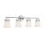 The Kaden 4-light bathroom vanity light from Savoy House has a classic look with a hint of industrial inspiration. White opal glass shades are held in place with eye-catching hardware that, like the bar and backplate, is finished in polished chrome. Kaden is 10.5" in height, 34" in width and extends 7" from the wall. It uses four standard size bulbs with a max of 60 watts per bulb. Damp area rated.