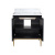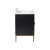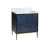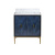 The Kallista 30" Blue Vanity has a dark sapphire blue finish that enlivens the sycamore veneers on its door fronts. The exterior is finished in a glossy caviar black. The vanity sits atop antique brass iron legs and the matching hardware is made of cast brass. The interior has one adjustable shelf and there are two optional wood trays that attach to the inside of the doors. The white Carrara marble top is fitted with a white rectangular undermount sink. Other fine design attributes include soft-close door hinges and a matching marble backsplash.