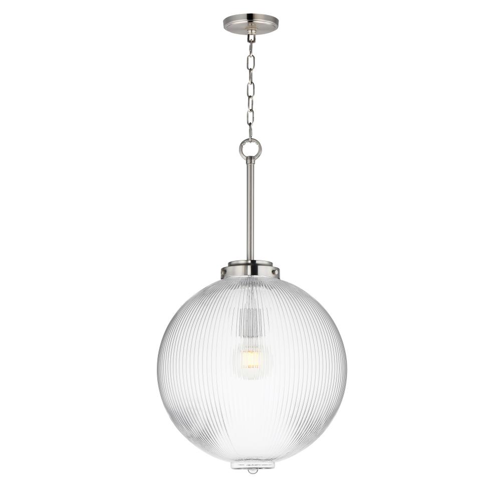 right arrow Long Description: Nostalgic spherical glass volumes with a ribbed pattern and a dipped flat bottom, this collection offers a retro and eclectic choice for pendants and sconces. Available in Oil Rubbed Bronze, Satin Brass, and Satin Nickel, these fixtures provide elegant ill
