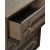 The Kendall Dove Gray Chest has a geometrically striking profile created by the interplay of peaks and valleys on its drawer-fronts. It is made of oak solids and veneers with surfaces in a dove gray finish that have been wire-brushed to accentuate the grain in the wood. The faceted dark brown chest is jewel-like, the metal pulls in a polished brass finish adding a glimmering touch to the warmth of the gem-like chest.