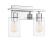 Chic contemporary style defines the Savoy House Lambert 2-light bath vanity light. The straight lines of the light bar, the cylindrical glass shades and the backplate have an uncluttered, modern aesthetic while the beautiful polished chrome finish is pure elegance. This streamlined design works extremely well with transitional decor, too, making it a terrific choice in your bathroom, dressing area or powder room. Two 60W standard size bulbs are visible through the clear glass shades, providing superb illumination. The fixture is 13.25" wide by 9.75" high and reversible, so you choose whether to mount it as uplight or downlight. You’ll definitely like what you see when you have the stylish Lambert above your mirror.