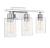Chic contemporary style defines the Savoy House Lambert 3-light bath vanity light. The straight lines of the light bar, the cylindrical glass shades and the backplate have an uncluttered, modern aesthetic while the beautiful polished chrome finish is pure elegance. This streamlined design works extremely well with transitional decor, too, making it a terrific choice in your bathroom, dressing area or powder room. Three 60W standard size bulbs are visible through the clear glass shades, providing superb illumination. The fixture is 22" wide by 9.75" high and reversible, so you choose whether to mount it as uplight or downlight. You’ll definitely like what you see when you have the stylish Lambert above your mirror.