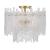 The Ackerly Collection showcases stunning ice glass, a textured material that resembles frozen or cracked ice. Its frosted, crystalline surface uniquely scatters light, producing a soft, diffused glow. This organic, sculptural effect adds a modern yet slightly retro touch to the design. The Ackerly Collection combines elegance with an artistic, edgy aesthetic, making it a standout in any space.