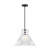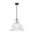 - Crafted with Steel in a Midnight Black finish with clear ribbed glass shade