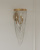 The dainty chains looping from point to point on the circular ring of the Lucien Wall Sconce are draped methodically and intentionally in a crisscross pattern. These bring this gold wrought iron sconce a sense of old world style, which is furthered by the French gold leaf finish on the metal. This gold sconce will grace a space like a piece of jewelry.