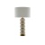 Our Luko Table Lamp is made of stacked quashed balls of ceramic in a white-mud finish interspersed with metal rings in an antique brass finish. These match the metal base and the hardware. Our Vica Table Lamp is the same design in a black-mud finish.