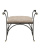The Mabel Ottoman is a classic design constructed of textured steel, which has a light gold rub that shows through. Special accents are the polished brass stainless steel ball feet and arm details, as well as the way the stretchers arc up toward the seat. The upholstered top is covered in a woven brown-beige performance fabric, and the seat is a generous 22 inches wide.