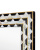 The Macy Rectangular Mirror has an intricate frame made of a sophisticated mix of materials that includes mother of pearl, horn, and brass. Not only does the shell on the black and white mirror shimmer, the black pieces of horn and the brass edging do as well. This is an artisanal offering, as every piece of material is hand-cut and hand-applied.