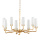 The Mathilda Chandelier has a frame made of cast brass in a matte gold finish with markings on their surfaces that look as if they have been smoothed in place with a palette knife. This brings the fixture a brutalist feel and adds extra texture to the design. The shades on the eight-light chandelier, made of milky white glass, slide into pronounced prongs that make the sconce look jewelry-like. Designed by Marjorie Skoura with a profile inspired by an antique, the gold chandelier is dimmable. Adjustable from 35" to 101" with use of included chain/rod kit/cable. If your space calls for a longer drop, additional chain/rods/cable is available for purchase.