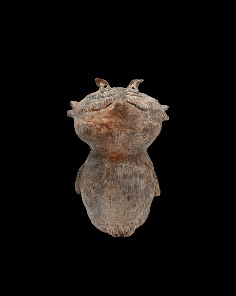 The Medium Hoot Owl was created by Thai artist Arjan Deng, who is known for his one-of-a-kind ceramic statues of emotionally evocative characters. This is his interpretation of the wise animal, made of terracotta that is splattered with a reactive glaze to bring the sculpture a sizable dose of texture and character.