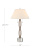 The Mizner Table Lamp has an airy shape made of rods of metal in an antique brass finish that are banded together at the top and bottom, and cinched in the middle, to create a swelling profile. The fluted body rises from an optic crystal base toward the truncated empire shade that is fastened to the lamp with an optic crystal finial. The two-light lamp has dual pull-chains to enhance its streamlined traditional feel.