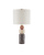 A delightfully geometric composition, the Morena Table Lamp is made of sections of Rosa Cappuccino Marble, Camello Neve Marble, and Breccia Marble. The multi-colored lamp is fitted with a beige poplin shade that is fastened with an orb finial, which matches the top Rosa Cappuccino marble ball. Because this contemporary lamp is made of natural stone, colors and patterns will vary.