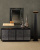 The Mosaico Credenza blends texture, craftsmanship, and timeless style. Its doors are clad in a mosaic of antique mirror tiles individually hand-placed to fit seamlessly in a black wood frame. The mirrored cabinet sits on a plinth base that adds a refined detail, as does the combination of aged mirror surfaces and contrasting dark wood.