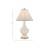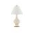 The Musetta Table Lamp is an example of tailored perfection. Panels of faux leather have been expertly sewn and wrapped around the hexagonal shape that makes the lamp's body so appealing. The ivory lamp is cinched by a metal ring as it nears the base, which matches the antique brass finish on the base itself. The box-pleated shade that echoes the scale of the lamp is fastened with a finial that is also in antique brass.