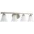 Ideal for a bathroom;Perfect for traditional and transitional style settings;Beautiful brushed nickel finish;Elegant etched glass shades;Mount the light fixture facing up or down;Use 4 medium base bulbs that are sold separately (100 W max - LED/CFL/incande