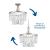 Glimmer fits the definition of livable luxury with elements that sparkle to create an instant statement within the home. Prismatic glass three-light pendants are supported by an architecturally- styled frame in Silver Ridge finish. The cascade of faceted linear glass deliver a sleek silhouette to any room. This versatile 19" round fixture can also be mounted as a semi-flush.