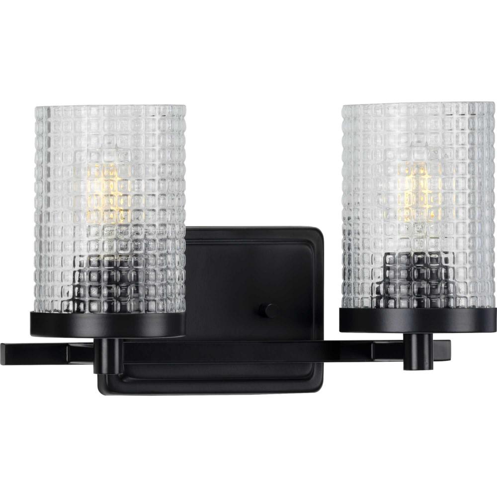 Signature clear patterned glass shades provide a calming and relaxing lighting experience.;Each shade is held in place by gentle backplates coated in a beautiful black finish.;Open the door to a world of modern elegance with this clean and crisp bath ligh
