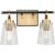 The Cassell Two-Light Vanity Fixture brings an enduring style to the bath. The light boasts a dual-tone finish of Vintage Brass and Matte Black that accentuates its distinguished and handsome design. Tailored details smoothly blend linear precision with elegant circular rings and clear glass shades.