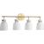 The Lexie Four-Light Vanity Light is full of spunk with a fresh new style for todays home. A slender minimalist frame finished in Brushed Gold supports opal glass shades with a distinctive cinched metallic collar.The versatile fixture can be mounted facing up or down, offering the perfect amount of illumination to the room.