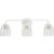 The Quillan Three-Light Vanity Light offers a graceful flourish to add distinctive designer touch. Scalloped elements create a richness of detail to complement the clarity of clear, elliptical glass shades. Each fixture includes both matching and contrasting accent rings. This versatile light can be mounted up or down to provide clear illumination to the room.