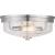Inspired by modern architecture, Blakely two-light flush mount fixtures feature handsome details for variety of interior design styles. Clear glass highlights the lamp source and is finished in Brushed Nickel.