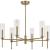 Elara has a clean contemporary design that works across many decor styles. The chandelier features a slender, chic form with stylized finials inspired by a chess pawn for a classically modern look. Select tapered or fabric drum shades, or clear cylindrical glass shades to customize the design and create the perfect amount of even illumination.