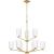 Fundamentally modern but with a traditional twist, the Adley double-tiered chandelier combines etched white glass shades with a curved arms and simple, straight bars finished in satin brass. This light is an elegant choice for illuminating dining rooms, halls and home theaters or great rooms in transitional settings and contemporary settings. The fixture has 60 in. of chain to customize it for a variety of ceiling heights and can be used on a sloped ceiling.