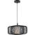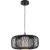 - The pendant features a white linen fabric diffuser surrounded by a black rattan shade