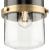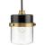 The Beckner Pendant reflects mid-century and industrial design from its mechanical knobs and hooded frame. Finished in Matte Black with Vintage Brass accents, the sleek rod suspends its vintage-style shade complemented by clear glass, delivering bright illumination while adding a modern touch. This mini-pendant can be use in a wide variety of locations.
