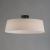Truncated tapered cones of linen shades diffuse light from an LED ring within them. The LED lighting offers ample illumination that is softly diffused behind the shade. A two-pronged fork detail supports the ring within further modernizing this transitiona
