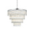 Turn your space into a glowing masterpiece with this striking pendant light, crafted from durable iron and shimmering clear ribbed glass. The cascading layers create a stunning interplay of light and shadow, refracting illumination into a radiant display that transforms your space into an illuminated work of art. Available in chrome for a sleek, contemporary aesthetic, black for bold contrast, and satin gold for an inviting warmth, this pendant light is as versatile as it is beautiful. Whether you choose a single tier for minimalist charm, two tiers for balanced depth, three tiers for bold presence, or four tiers for show-stopping grandeur, there’s an option for every setting. Featuring both round and rectangular frame designs, this fixture adapts to any space with ease. Complete with a matching canopy and chain, and fully dimmable for customized lighting, this pendant pairs perfectly with the coordinating single-tier flush mount and wall sconce collection, ensuring a cohesive, radiant design throughout youhome or office. Please note: light bulbs are sold separately.