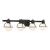 The Savoy House Pierce 4-light bath light offers up a retro, factory-inspired style that makes it an excellent choice for stylish bathroom lighting. Slender, curving half-cages finished in Black securely hold orbs of white opal glass that will provide a bright and welcoming glow. Pierce is 7.5" in height, 32" in width and extends 7" from the wall. Uses four G9 style bulbs of up to 60 watts per bulb. Bulbs not included. Install as shown. This bath bar is damp area rated.